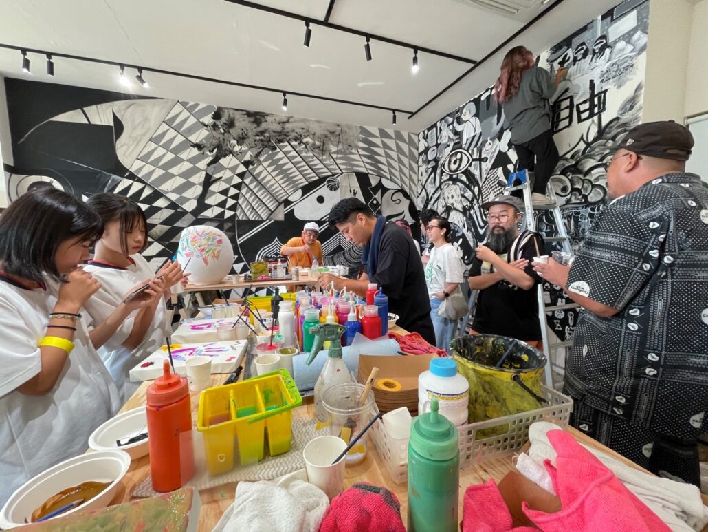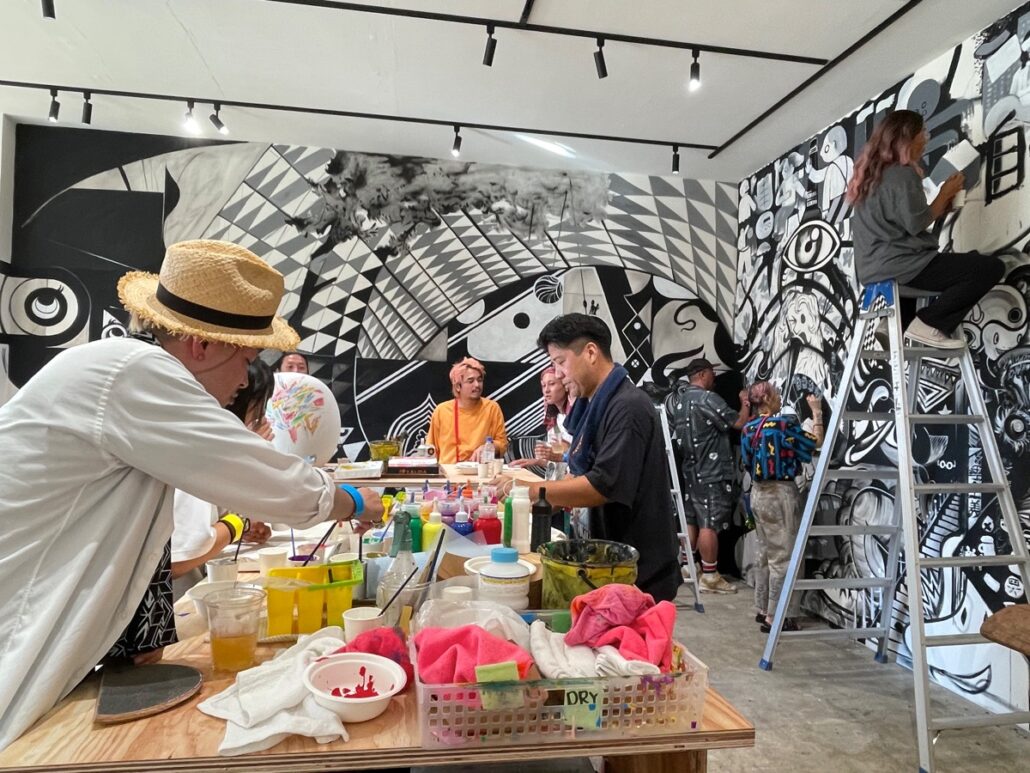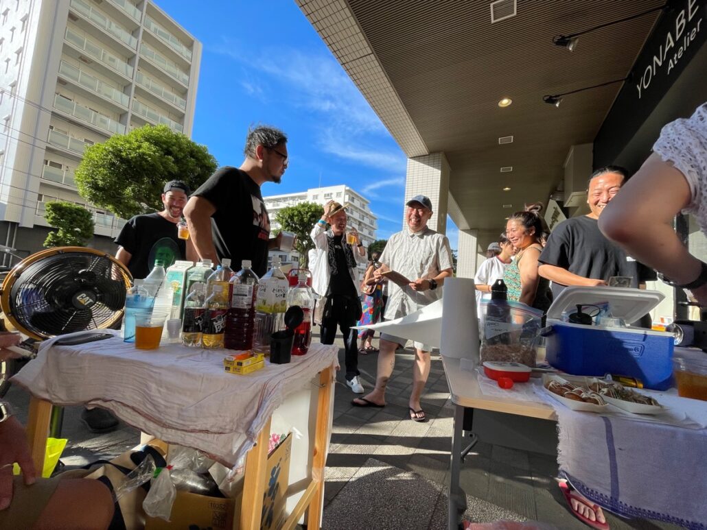 ペイントバーの他にも、小田くんの子ども向けワークショップ、ゆずるくんのシルクスクリーン、ハタケのレーザー、最高の音を鳴らし続けてくれたコイズミくん、デミくん、ケイくん、FAVちゃん、作品展示&販売をしてくれた薬王寺さん、YONABE MURALペイントに作品を追加してくれたKAY、ユズルくん、カーリー、d-Fect、suiちゃん、オダくん、そして外を賑わして気持ちよく酔わせてくれた106カフェのトールくんと「わかタコ」わかちゃん。改めましてありがとうございました!